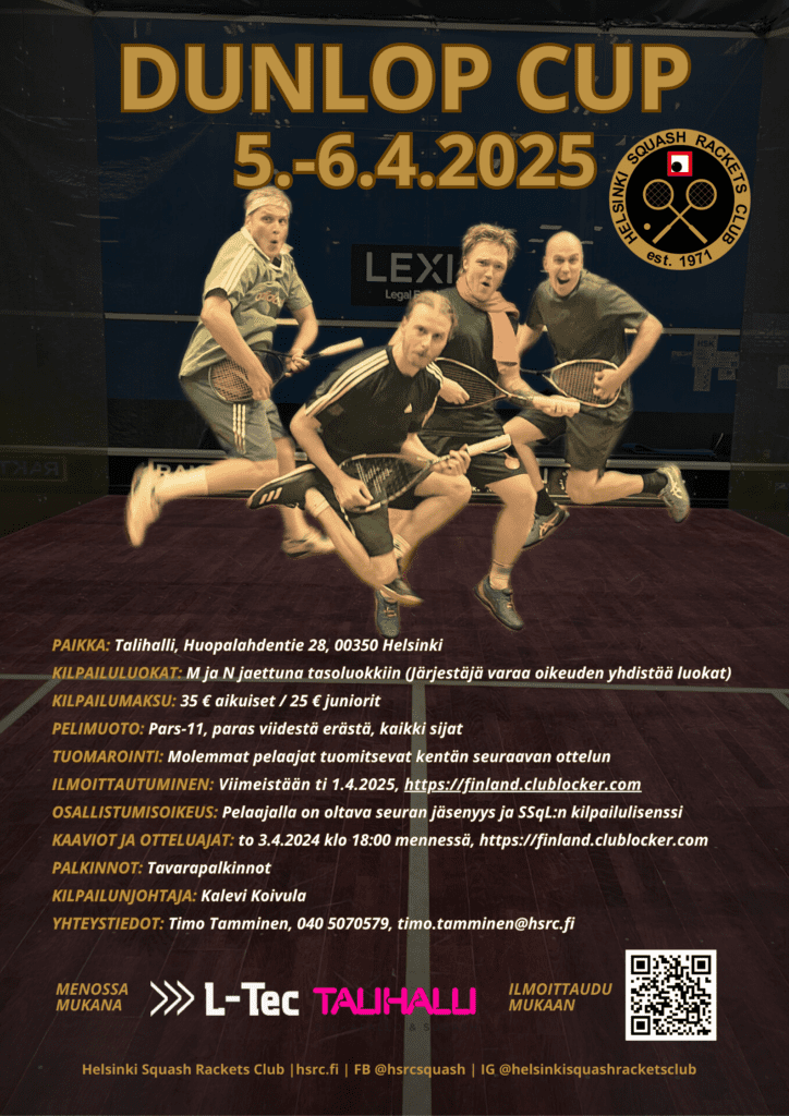 Vaikka viikonlopun sää ei kovin keväinen ollutkaan, oli Tallihallissa mukavan lämmintä kun Dunlop Cup pelattiin 5.-6.4.2025! Osallistujia oli tällä kertaa 32 ja turnaus pelattiin kahdessa sekalohkossa 16 pelaajan voimin per lohko. A-lohkossa naisia edustivat MiSq:n Viivi Paksu ja SquNa:n Viola Joutsi, ja B-lohkossa HSRC:n oma Morgan Xiao-Berglund sekä MyyrSquashin Marleena Hiltunen. A-lohkossa ESRC:n Olli Soini […]