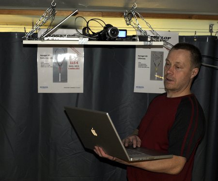 Yön pimeinä tunteina A. Lind kumppaneineen asensi videostreamjärjestelmiä kuntoon. Kuvassa valmistellaan SM-kilpailujen pääkentän kuvausta. Tavoite on, että valikoituja SM-pelejä voi seurata osoitteessa www.hsrc.fi/live